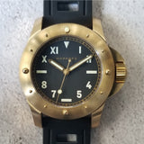 Bezel: 120 clicks brushed brass with lumed pin at 12