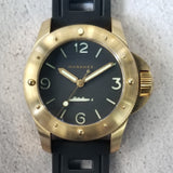 Bezel: 120 clicks brushed brass with lumed pin at 12